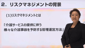 本研修の目的は、ご利用者様が安心して生活を送ることができるように、必要な情報を収集し、環境・対人関係・ハード・ソフトウエアに潜むリスクを軽減、排除するために、リスクマネジメント活動を行えるようになることです。