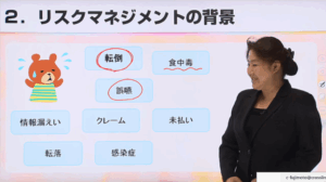 本講座では、まずはリスクマネジメントとは何か、リスクマネジメントに取り組むようになった背景を知り、リスクマネジメントに取り組むためのプロセスについて学びます。次に、リスクマネジメントに必要な情報収集・分析・課題の明確化について、最後に対応策の検討・実施、さらに実施後の評価についても学びます。