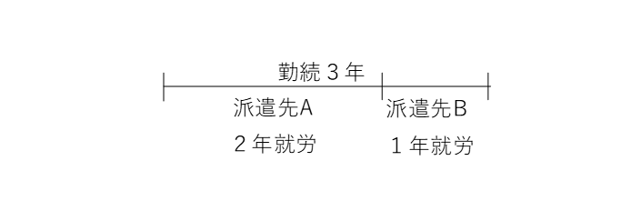 それでは、同一の派遣先(退職金制度有)で3年以上勤務したが、抵触日を迎え、雇用安定措置として他の派遣先(退職金制度無)で勤務することになった場合、どのように考えるのでしょうか?