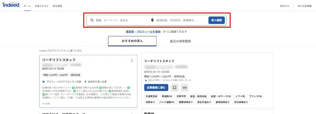 Airワーク 採用管理経由で掲載された求人は、Indeed上ではほかの求人と同様に一覧画面に表示されます。「Airワーク 採用管理の求人」といった特別なカテゴリやラベルがあるわけではありません。そのため、求職者にとっては掲載元を意識することなく、自然な形で求人が表示されます。