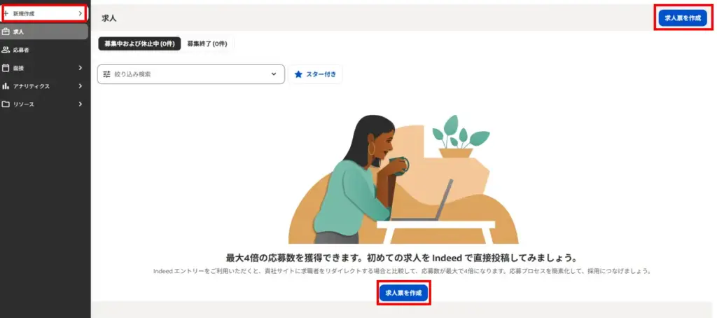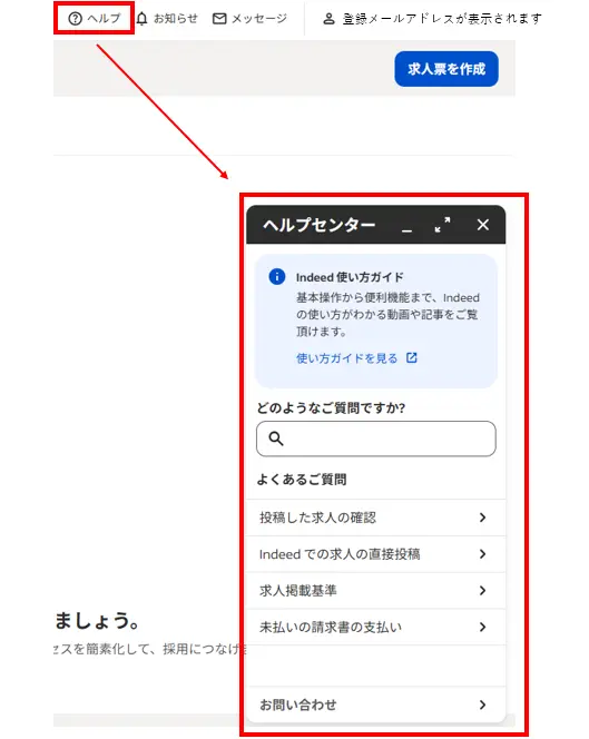 ここでは、Indeedにログインしたあとに表示される管理画面の構成をご紹介します。