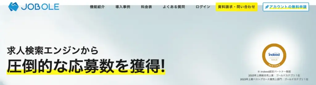 「JOB OLE(ジョブオレ)」は、求人検索エンジンでの効果最大化を目的とした応募獲得ツールで、導入実績は1,500社以上にのぼります。「Indeed Goldパートナー 1位」の実績を持つ運営会社の株式会社イオレによって提供されています。
