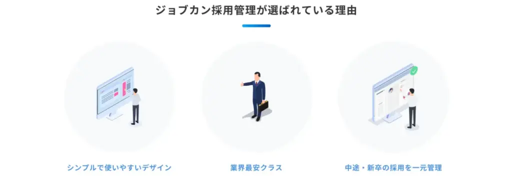 株式会社DONUTSが運営する「ジョブカン採用管理(ジョブカンさいようかんり)」は、「シンプルで使いやすいデザイン」と「業界最安クラス」を特徴とし、新卒・中途採用を一元管理できるATSです。勤怠管理などで知られ、シリーズ累計導入実績25万社以上を誇るジョブカンシリーズの一つです。