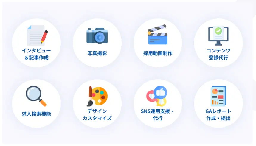 加えて、インタビュー&記事作成や写真撮影といった豊富なオプションサービスも充実しています。こうした機能を活用することで、自社の魅力をより引き出した、訴求力の高い採用サイトを作成できるでしょう。